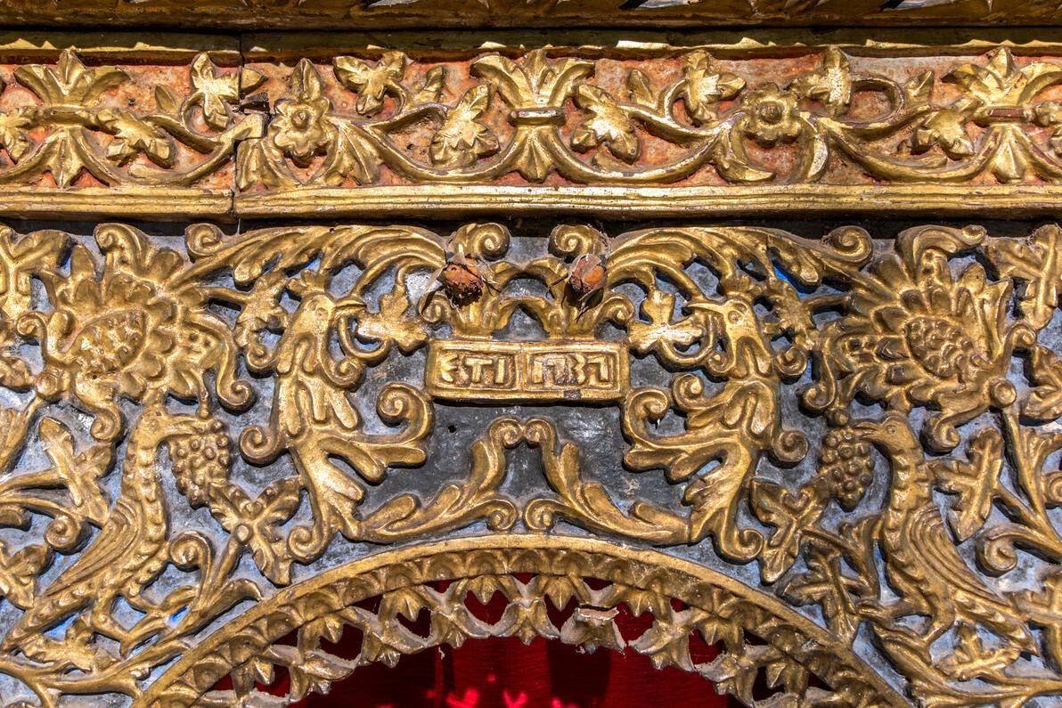 Στο εσωτερικό του διατηρούνται ενδιαφέρουσες τοιχογραφίες βυζαντινής τεχνοτροπίας, που ολοκληρώθηκαν το 1732, από τους ίδιους κτήτορες, όταν επίσκοπος ήταν ο Διονύσιος από τα Ιωάννινα. Αξιόλογο είναι το ξυλόγλυπτο τέμπλο, έργο του 1737, και οι εικόνες, που χρονολογούνται στο 1738. Αριστούργημα της ξυλογλυπτικής τέχνης είναι και ο πολυέλαιος, που θυμίζει αντίστοιχα έργα σε μονές του Αγίου Όρους, καθώς και το σμαλτοκέντητο ψαλτήρι - αναλόγιο με ελεφαντόδοντο.