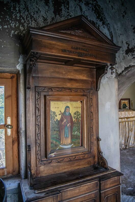 Originally, the church was dedicated to Athanasius the Great, Patriarch of Alexandria, and yet following the erection of the large church to the honour of the Saint, the small chapel is now honoured to the memory of Saint Athanasius the Athonite and celebrates on the 5th of July.