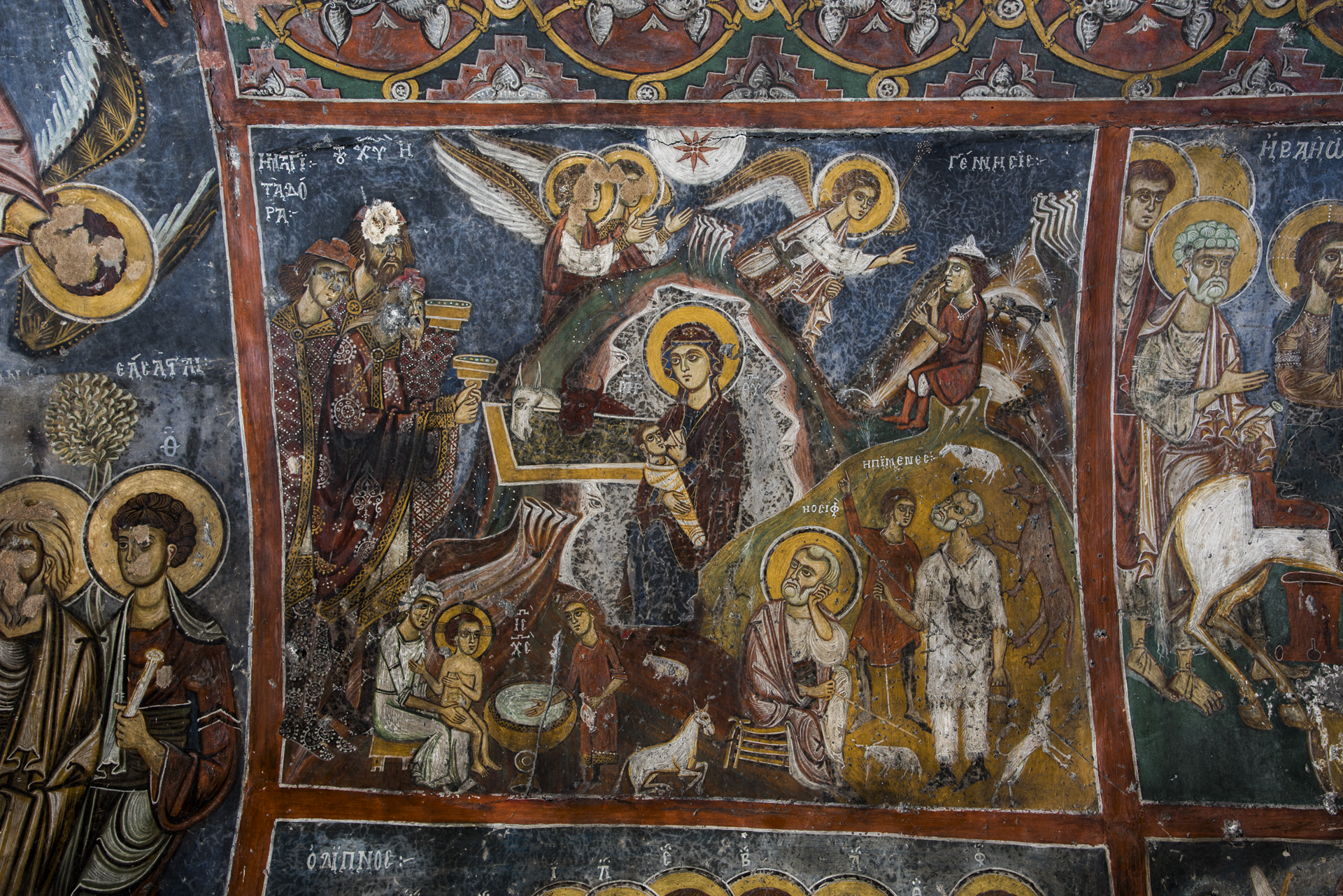 L'église est de petites dimensions et appartient au type de la basilique à nef unique avec toit voûté. Les murs sont construits en pierres de tuf de grandes dimensions et avec des parties d'un temple ancien de la région, ce qui était commun à l'époque et qui avait comme but l'esthétique de la façade des églises. L'intérieur est recouvert de belles fresques qui sont sauvegardées en très bon état et c'est une des rares exceptions de monument dans la partie sud du pays, que l'on peut dater avec exactitude grâce à une inscription qui se trouve dans l'église. Les scènes peintes sont caractéristiques par leur sobriété et les détails de leurs représentations, et comprennent quatorze scènes de la vie du Christ. On remarquera une image rare de la Vierge Marie allaitant, dans la scène de la Nativité qui figure dans l'abside.