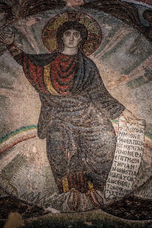Parmi les exemples exceptionnels de l’art paléochrétien, on recense la mosaïque de la conque de l’église. Elle illustre la vision du prophète Ezéchiel avec Christ imberbe, entouré par les prophètes et les puissances célestes.