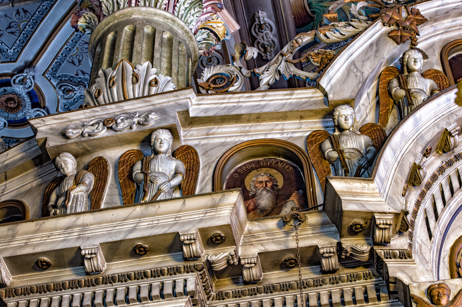 Dans son intérieur, une place dominante est tenue par l'icône en relief de l'Archage Michel, qui est gardée dans un écrin luxueux réalisé en 1766. Dans l'église, la tunique de prélat et l'étole du Patriarche Grégoire V, dans un emplacement spécial à droite de l'entrée. Ces objets précieux avaient été donnés par le patriarche lui même à son protesyncelle Porphyrios, qui est par la suite devenu Mitropolite de Mytilène. Il est intéressant de remarquer aussi les petites chaussures métalliques qu'offrent à l'église les croyants puisque selon la tradition, l'Archange, use ses chaussures puisque qu'il parcours toute l'île les nuits.