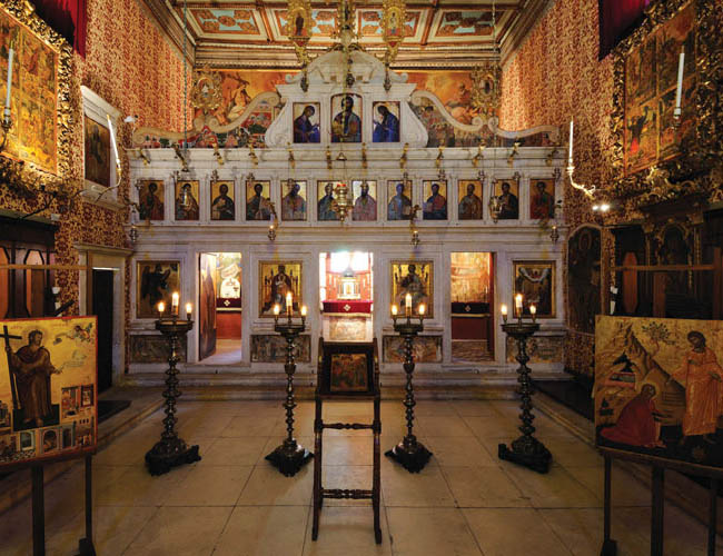 C’est ici qu’est abrité le très intéressant Musée Byzantin de Corfou. L’église est dédiée à la Vierge, Mère de tous les Saints, et constitue un des plus anciens et des plus riches monuments ecclésiastiques de Corfou. Elle aurait été construite au XVe siècle. Dans les vitrines du musée, environ quatre-vingt dix icônes sont exposées, dont la plupart appartiennent à l’église même. Le reste des icônes exposées dans le narthex proviennent de l’ancienne collection byzantine du Musée Asiatique.