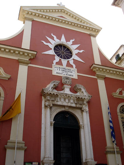 Кафедральный собор Корфу посвящен Богородице Панагии Спилиотиссе, он представляет собой трехнефную базилику в стиле архитектурных традиций ионических островов.